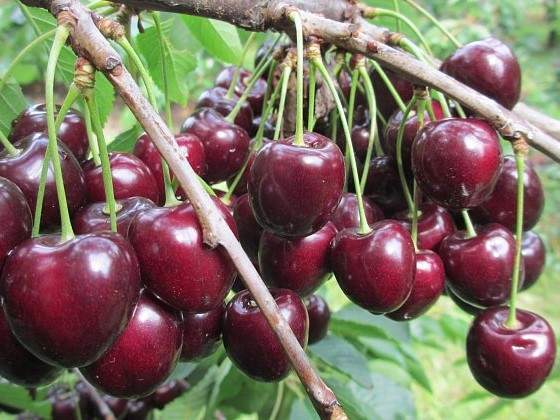 Колір бордовий, у дозрілих ягід практично чорний. Смак виразний, солодкий, легка кислота лише освіжає його. Всередині темно-червоні, м'ясисті. Шкірочка глянцева, дуже міцна. Кісточка невелика, трохи витягнута. Переваги сорту плодоносить щорічно плодоніжка вільно відділяється від ягоди.